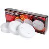 3 stk optiske røykvarslere med trådløs seriekobling, rekkevidde inntil 60 m. 85 dB lydnivå. Leveres uten batterier (1 stk 9V og 3 stk AA 1,5V). Ny batterikontakt Godkjent etter NS14604, R&TTE og CE. Maks 12 i serie.