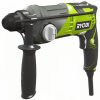 Ryobi RSDS680-K er en 680W SDS-Plus kombinasjonsborhammer som forenkler tung boring og meisling i betong og mur. Den har fire funksjonsmoduser: slagboring (hammer + rotasjon) for betong, vanlig boring (uten slag) for tre og metall, meisling (kun hammer) for pigging av fliser/betong, og meiseljustering for å rotere meisel til ønsket vinkel. Den pneumatiske hammermekanismen leverer 2,1 Joule slagenergi (EPTA) og opptil 5000 slag/min, noe som gir imponerende borekapasitet i betong (opptil Ø 22 mm). Motoren har variabel hastighet 02150 o/min som sammen med slagkraften gir rask fremdrift i harde materialer. SDS-Plus chucken gjør det enkelt og raskt å bytte bor og meisler uten verktøy, og maskinen er designet for komfort med relativt lav vekt (2,7 kg) og et hjelpehåndtak som kan roteres 360° for optimal kontroll. RSDS680-K leveres i koffert med 6 mm og 8 mm SDS+ bor samt en avtagbar 13 mm chuckadapter for bruk av vanlige bor.