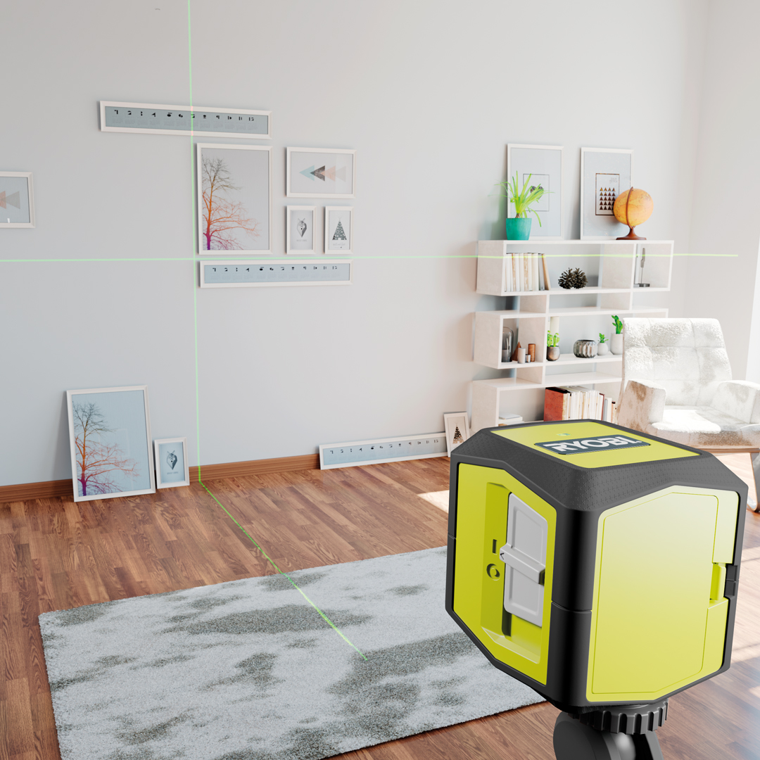 Ryobi GRØNN Krysslaser er ideell for hurtig utjevning (vater) og festeoppgaver som oppheng av skap, hyller og bilder rundt om i huset. Den grønne laserteknologien gir økt synlighet av laseren, opptil 4 ganger mer enn vanlig rød laser. Med horisontal og vertikal linje som sendes opptil 15 meter, gir den presise målinger med en nøyaktighet på +/- 0,5 mm/m. Krysslaseren har en selvnivellerende funksjon med en selvutjevningstid på kun 3,5 sekunder.