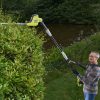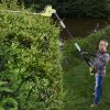 • Forlengbart Skaft: Kan utvides opptil 2,6 meter for en total rekkevidde på opptil 4 meter, ideelt for klipping av høye hekker.