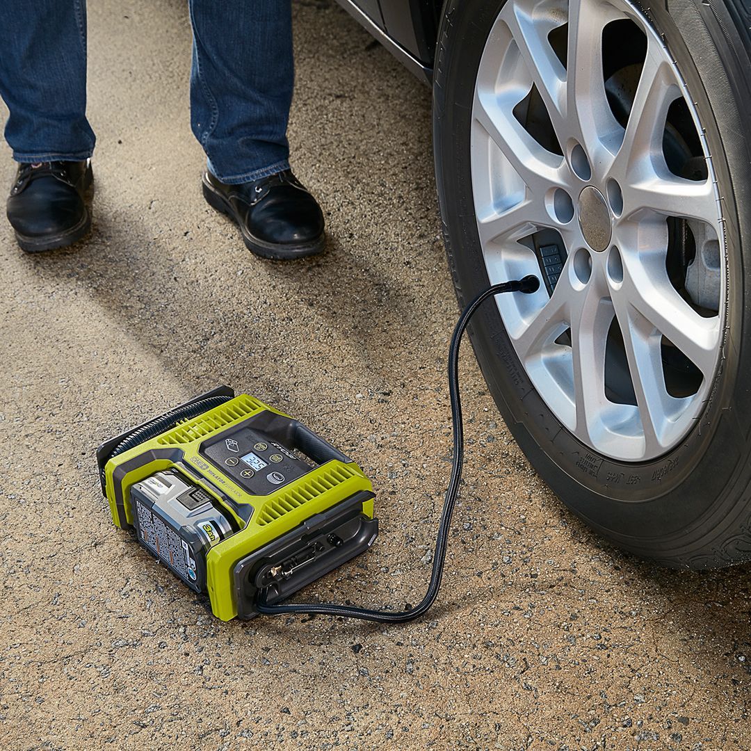 Ryobi ONE+ R18MI-0 multikompressor er en allsidig løsning for å pumpe dekk og oppblåsbare produkter. Den kan oppnå et maksimalt trykk på 150 psi (10,3 bar / 1030 kPa), noe som gjør den ideell for både små og store oppgaver.