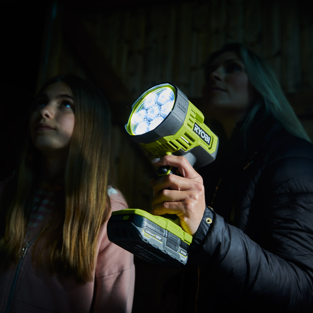 Ryobi Spotlys ONE+ RLS18-0 gir kraftfull belysning med en maksimal lysstyrke på 3000 lumen. Med en robust LED-stråle som lyser opp til 600 meter, er dette spotlyset perfekt for inspeksjoner på både mellomlange og lange avstander. Velg mellom tre lysstyrker – 3000, 1300, og 700 lumen – for å tilpasse belysningen etter behov.