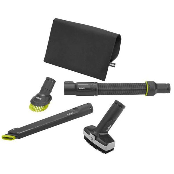 Ryobi støvsugersett RAKVA04. Flerfunksjonelt og problemløsende støvsugertilbehør for bruk til rengjøring i hus og bil. Tilbehør designet for å rengjøre en rekke materialer som matter, tepper, luftventiler, fugemunnstykke for rengjøring i trange kriker og kroker. Forlengerstang for ekstra rekkevidde. Levereres med 1 stk børstemunnstykke, 1 stk tekstilmunnstykke, 1 stk fugemunnstykke, 1 stk bøybar slange og 2 stk universaladapter. Passer alle Ryobi støvsugere samt de fleste andre merker.