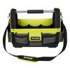 Ryobi RSSLOT1 er en stor, åpen verktøyveske designet for enkel tilgang og oppbevaring. Laget med slitesterkt 600 denier yttermateriale og 1680 denier i lommene, tilbyr denne vesken langvarig holdbarhet. Hardbunnen i polypropylen gir ekstra stabilitet, mens det gummibelagte håndtaket i aluminium og den ergonomisk polstrede skulderstroppen gir god komfort.