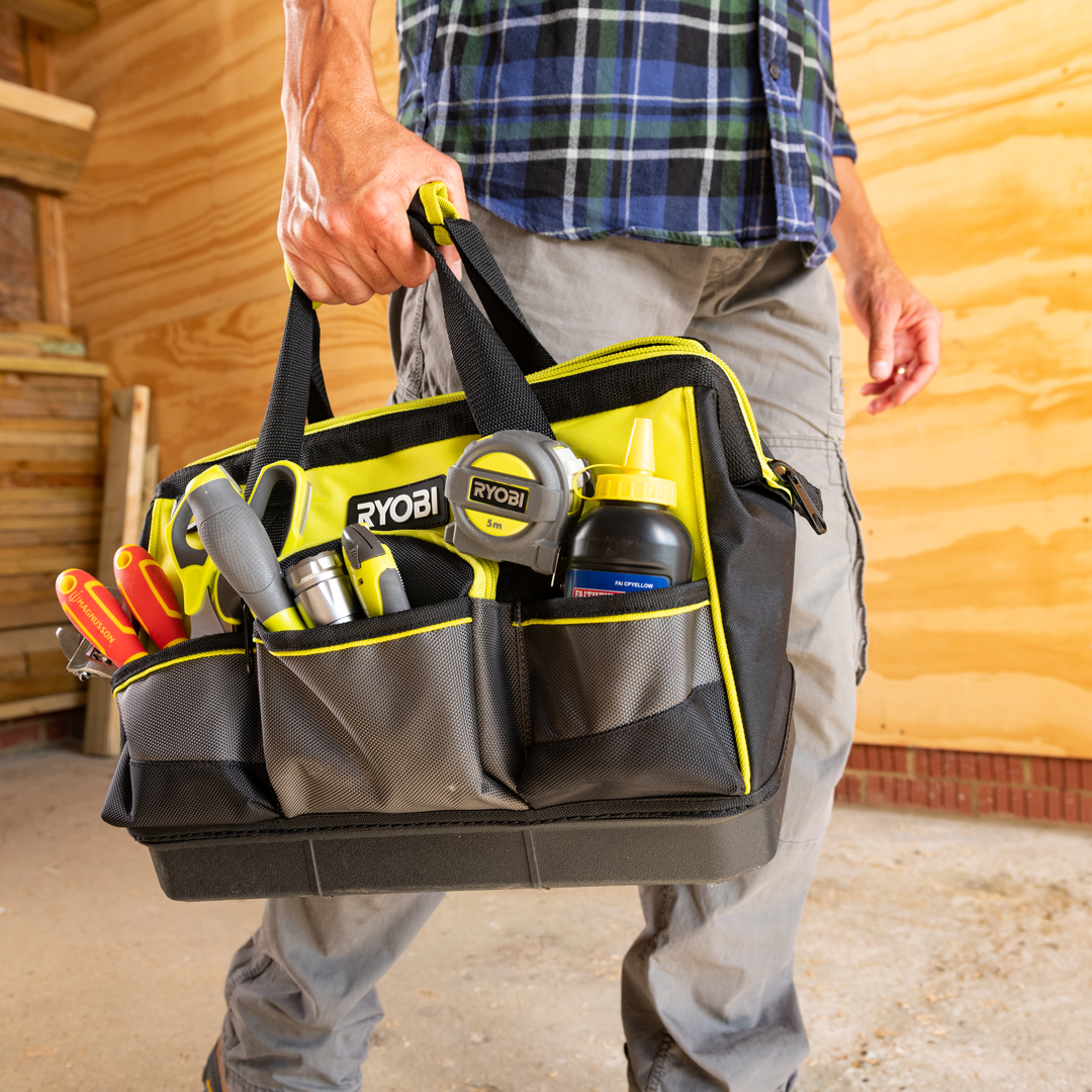 Ryobi RSSSTB1 er en slitesterk verktøyveske i størrelse small, perfekt for håndverktøy og små tilbehør. Laget med 600 denier yttermateriale og 1680 denier lommemateriale, gir denne vesken god holdbarhet. Den kraftige hardbunnen i polypropylen og forsterkede håndtak sikrer langvarig bruk. Med en ergonomisk polstret skulderstropp og stor, funksjonell glidelås, er vesken både komfortabel og praktisk.
