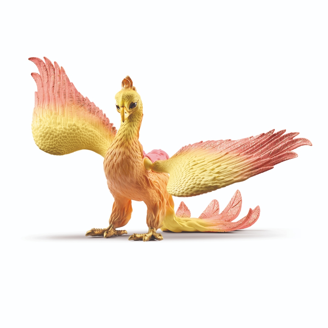 Føniks-figuren fra Schleich Bayala-verdenen stråler i glødende farger og har majestetiske vinger som kan beveges. Denne mytiske fuglen symboliserer gjenfødelse og bringer magi til leken. Detaljert håndmalt design gir en autentisk opplevelse. Passer for barn fra 5 år og oppover.