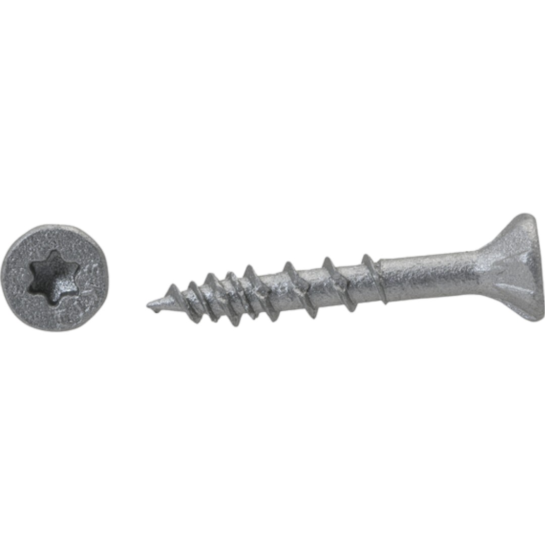For krevende utendørsmontering. Undersiden av hodet er turbinformet, noe som gir en uslåelig forsenkning og en perfekt finish. Supervass spiss som griper direkte i treet, og patenterte, sagtannede gjenger for utmerket reduksjon av sprekker.