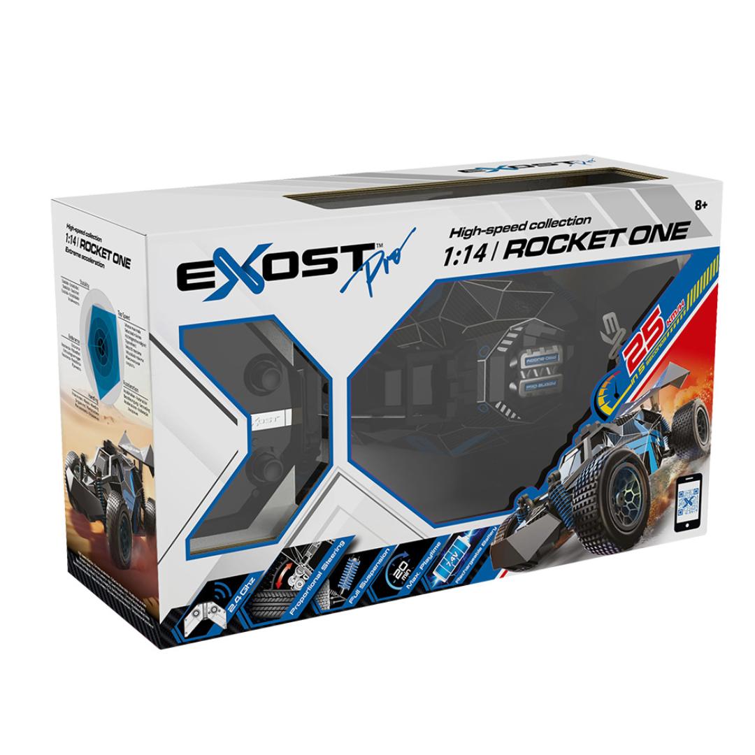 Silverlit EXOST Pro Rocket One leverer ekte kjøreglede i kompakt format. Denne radiostyrte bilen er bygget for fart, presisjon og kontroll – perfekt for unge sjåfører som liker actionfylt lek både ute og inne. Med digital styring og fjæring på alle hjul takler den variert terreng med imponerende stabilitet.