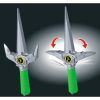 Med ninjakniver og kastestjerner fra Simba Toys kan barna leke seg inn i rollen som en ekte ninja. De to knivene har en mekanisk funksjon og kan kobles sammen ved å trykke på knappen som åpner de sølvfargede sidepanelene.