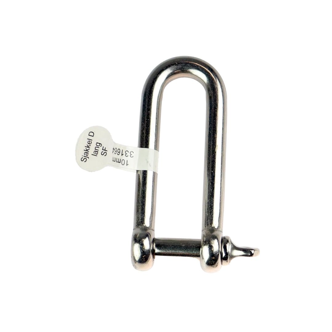 Materiale: AISI316/A4 Syrefast stål D-sjakkel langBolt og godstykkelse: 10mmInnvendig Lengde: 95mmInnvendig Bredde: 20mmTotallengde 122mmArbeidslast kg: 1450Bruddstyrke kg: 5800