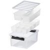 Oppbevaringsboks komplett med innsatser. Det slanke lokket, hvite innsatser og hvite klips gir esken et nøkternt utseende. Ideell for å holde orden på småting. Flott å bruke som verktøykasse. Oppbevaringsboksen kan stables med lokk. De sterke klemmene fester lokket godt på plass.