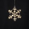 Fin innendørs vindusdekorasjon. Snøstjernen har 16 stk LED lys og er 18 cm høy. Den drives av 3 stk AA batterier (ikke inkludert). Den styres med timer. 6 timer På, 18 timer AV.