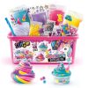 Sensorisk slimkasse med enhjørningstema fylt med morsomme komponenter for kreativ lek. Alt oppbevares i den praktiske beholderen med håndtak, slik at barnet enkelt kan rydde og ta det med seg.