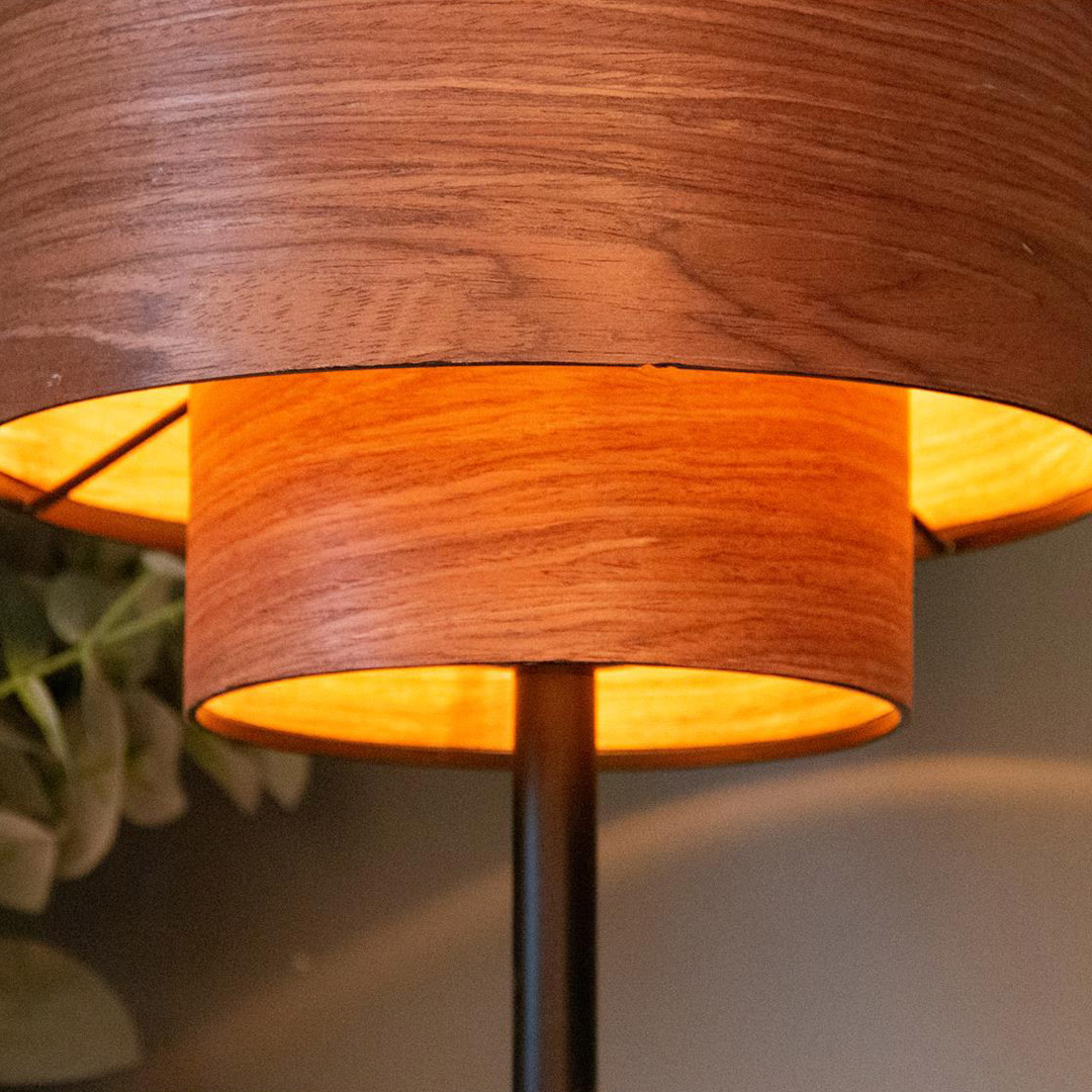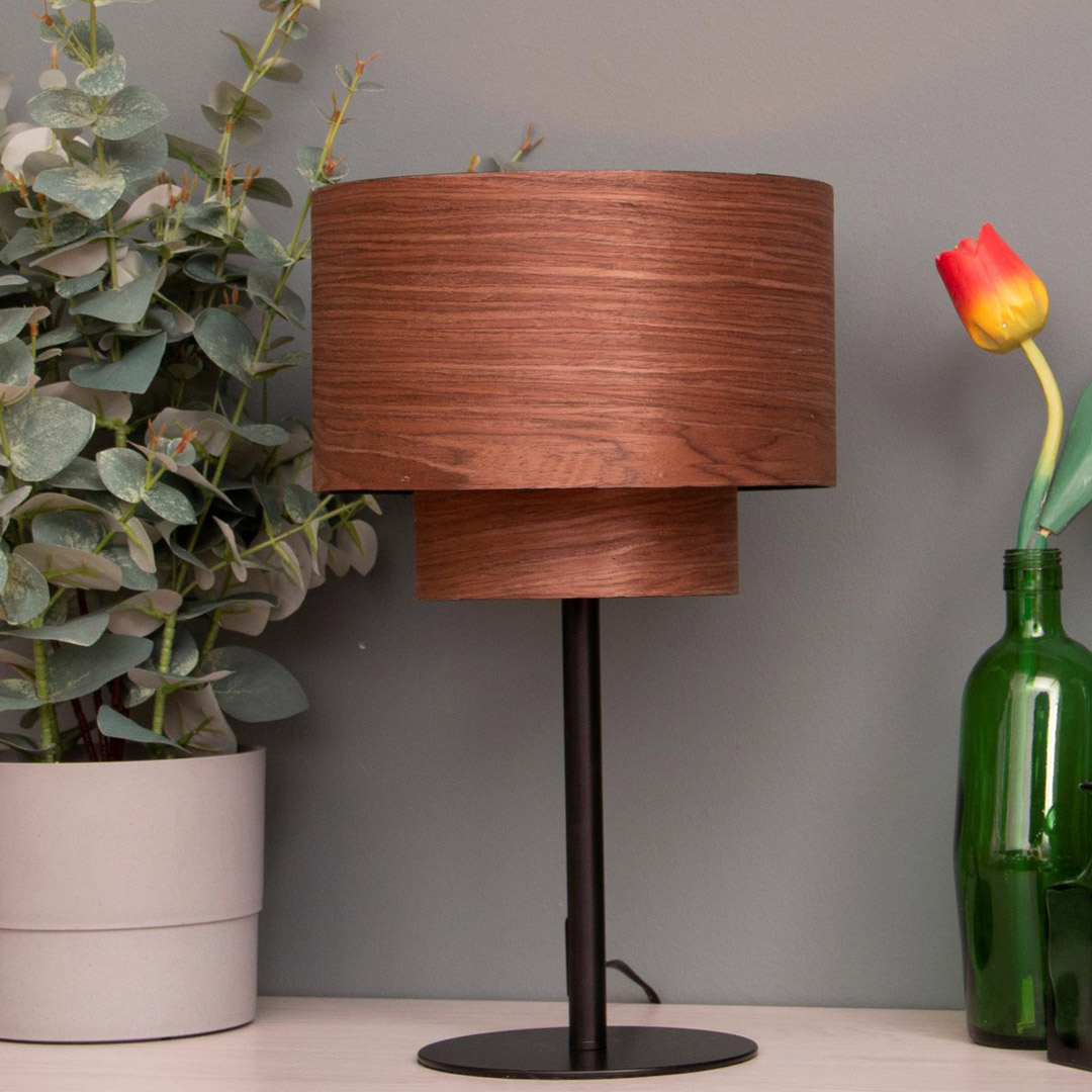 Sora bordlampe med dobbel mørk trefiner lampeskjerm