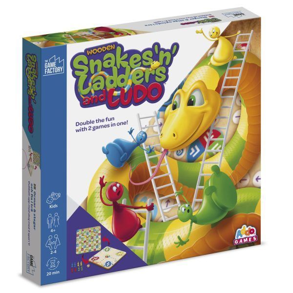 Det klassiske brettspillet hører hjemme i enhver spillsamling. Skynd deg til toppen av brettet med Slanger og Stiger-spillet! Bruk stigene til å klatre en rad eller to høyere opp, men pass deg for de slibrige slangene slik at du ikke ender opp hvor du begynte! Når dere er ferdige med spillet vender dere brettet om, og en annen familiefavoritt vil dukke opp: Ludo! Ras rundt på brettet for å få alle de 4 brikkene dine hjem, men pass på for å ikke bli sendt tilbake av dine motstandere. Fra 4 år.
