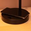 Split bordlampe med trådløs lading og USB kontakt. Dette er en bordlampe som egner seg svært godt til bruk på nattbordet eller andre steder man ønsker og lade telefonen eller andre gjenstander som støtter trådløs lading. Man kan også lade enheter via USB kontakten i lampen. Du kan lade 2 enheter samtidig via trådløs lading og USB kontakt. Den trådløse laderen passer til alle produkter som er QI-sertifiserte. Som for eksempel IPhone 8 og Samsung Galaxy 6 eller nyere.
