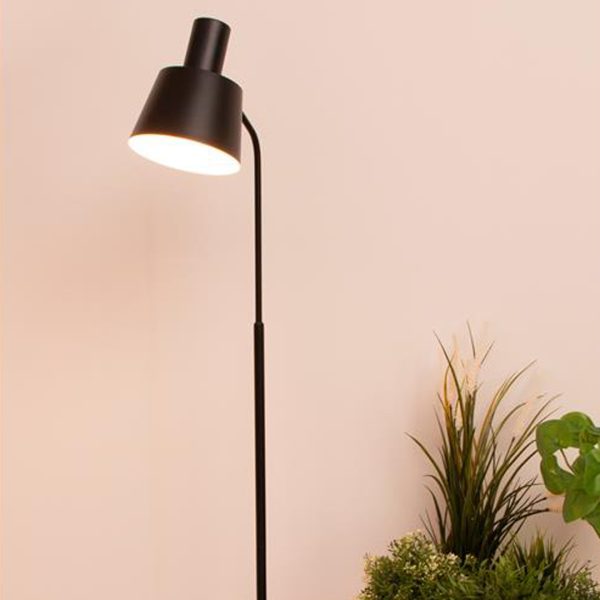 Split gulvlampe med lesearm med av/på brytere lett plassert tilgjengelig på lampehodet. Dette er en dekorativ gulvlampe med god lesefunksjon.