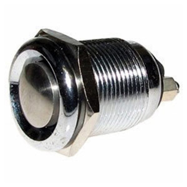 Startbryter i metall. Rund. 19 mm hull. 12 Volt. 20A.
