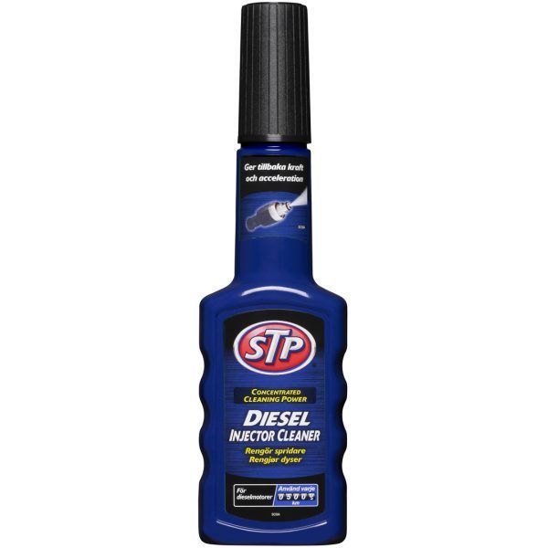 STP Diesel Injector Cleaner er et konsentrert og kraftfullt rengjørinsmiddelfor dieselmotorer. Fjerner raskt og enkelt belegg som bidrar til redusertkraft. En behandling rengjør drivstoffsystemet og dyser. Gjenopprettermotorens kraft og prestasjonsevne. Et rent drivstoffsystem er mer miljøvennliøker motorens levetid og gir bedre kjøreegenskaper. Anbefales hver 5000kmHele flaskens innhold tømmes i en full tank (opp til 60 liter). Foralle diesel- og biodieselmotorer, også med turbo, katalysator og partikkelfilt