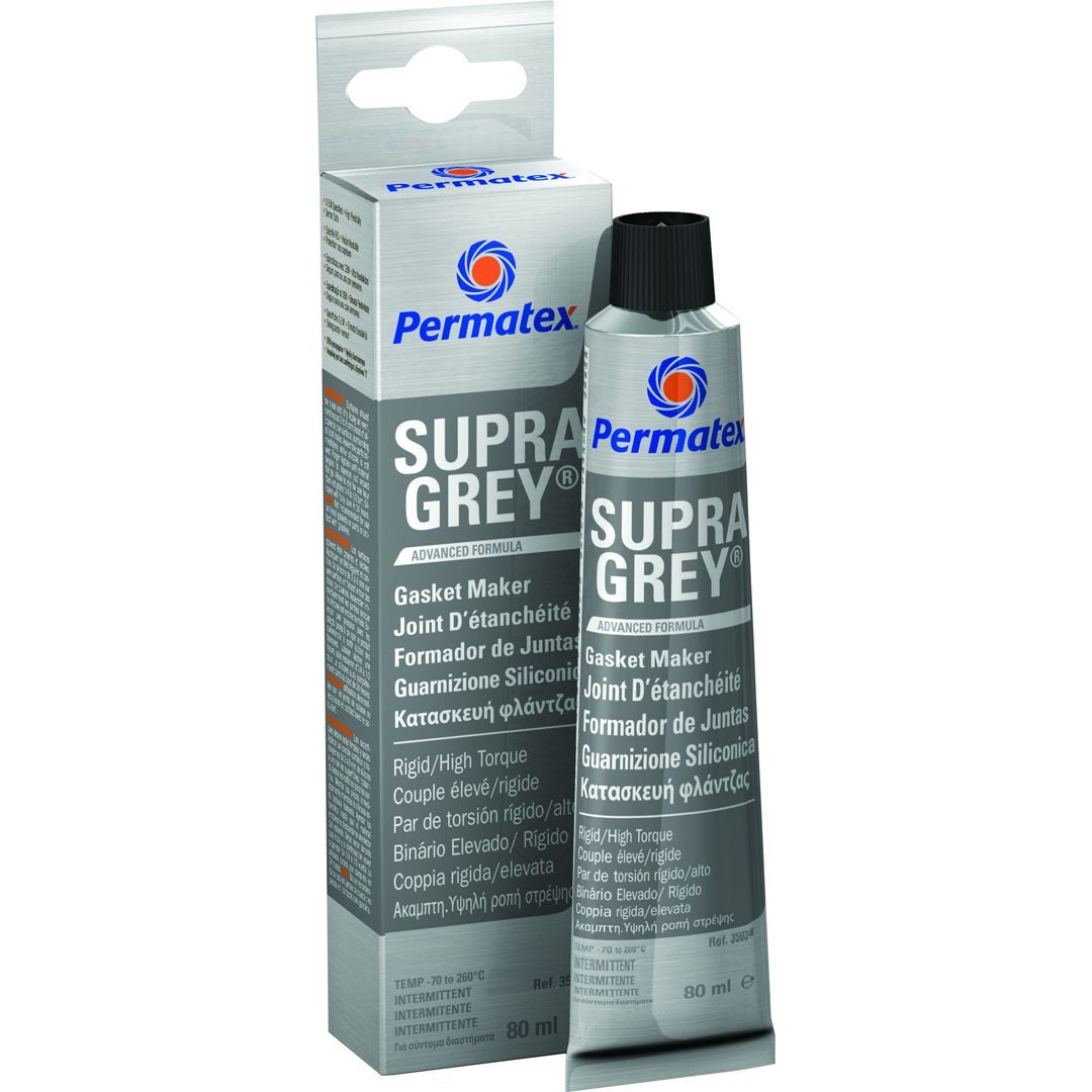 Bruksområder: Bunnpanne, ventildeksel, girkassedeksel osv. Erstatterpakninger. NB: Ikke topplokkpakning. Sensor- og rustsikker. Motstårhøyt trykk og vibrasjoner. Tåler de fleste kjemikalier, dog ikke bensin. Tåler temperaturer fra -54 C til +260 C. Ultra Grey er en en-komponentsselvvulkaniserende pakningsmasse som tåler høy belastning og vibrasjoner. Silikonpakningen herder ved eksponering av fukt i luften og danner ensterk, fleksibel pakning som ikke krymper eller sprekker ved aldring. Den er konstruert for å tåle harde påkjenninger og høye temperatureri motorer hvor det er tett mellom boltene. Også ypperlig for oljede flater. OEM Spesifisert av Chrysler, Ford, GM, Honda, Toyota m. fl. Kan brukesder det skal strammes med moment etter fabrikantens spesifikasjoner.