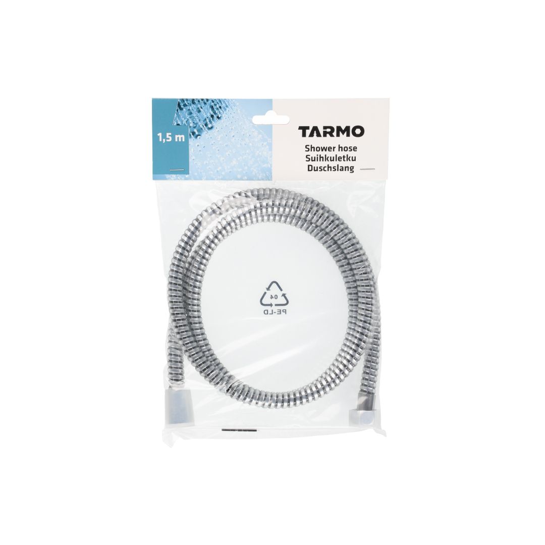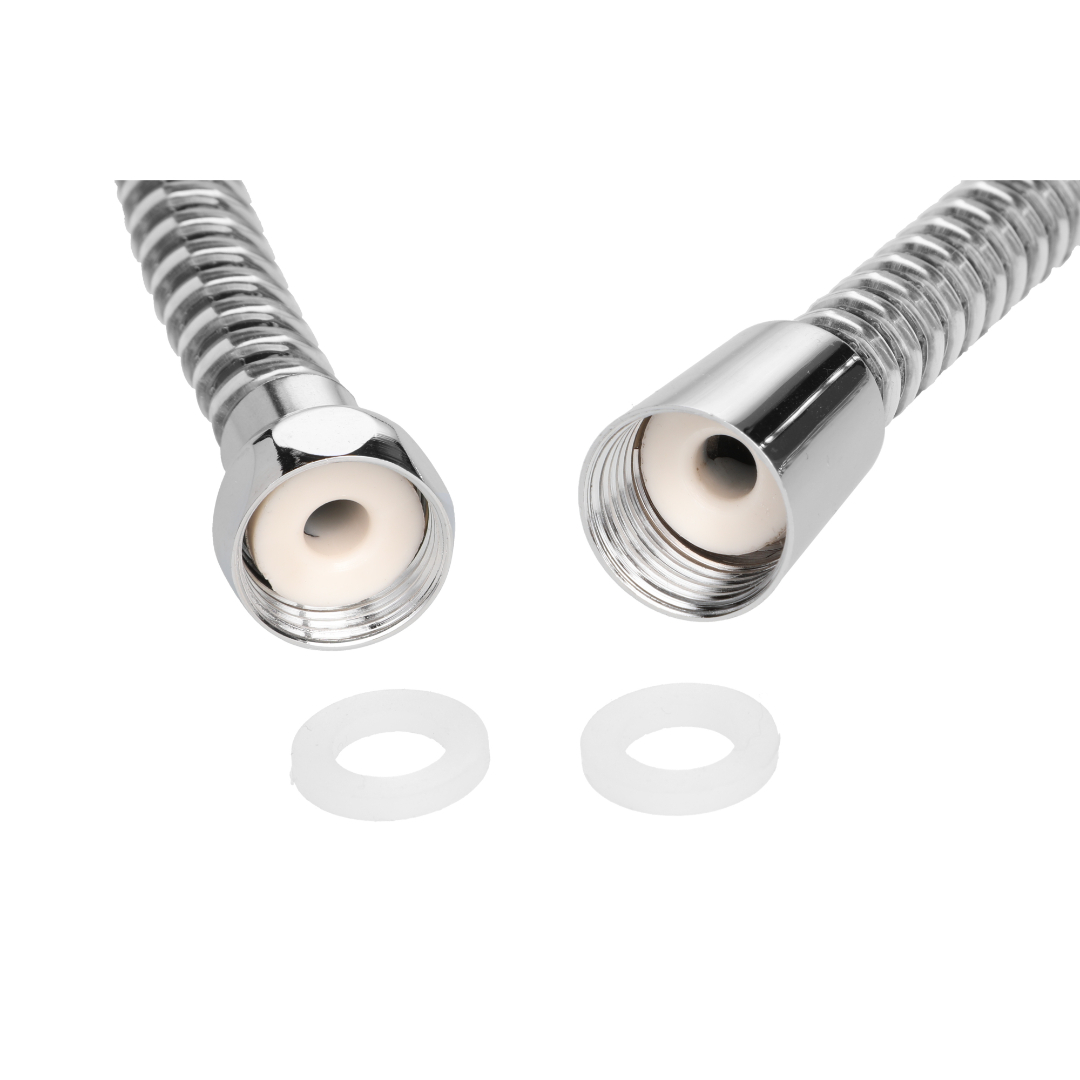 Lett og fleksibel dusjslange i PVC med krom/sort finish. Messingkoblinger 1/2″ i begge ender. Leveres med to tetninger.