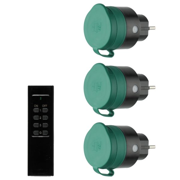 Fjernstyrte kontakter passende for utendørs bruk, perfekt til eksempelvis motorvarmer eller utendørs dekorlys. Setter inkluderer tre kontakter og 1 stk fjernkontroll. Frekvens: 433,92 MHz, rekkevidde maks 30 meter. IP klasse: IP44.