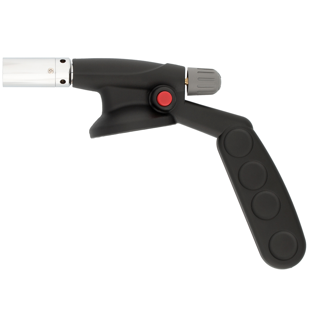 Gassbrenner med piezo tenning og håndtak. Justerbar flamme. Maksimalflammetemperatur: 1270 grader. Nominell effekt: 1,1 kW. Gassforbrukmaks: 80 g/t.