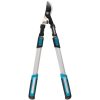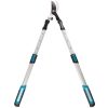 68-88 cm teleskopisk grensaks med varmebehandlede karbonstålblader i amboltstil. Øvre blad med teflonbelegg for enklere kutting. Håndtakene er lett aluminium og inkluderer myke og komfortable PP+TPR-grepsdeler. Amboltmodellen er designet for å kutte tørre og harde grener effektivt.