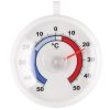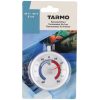 Termometer for bruk i fryser og kjøleskap. Viser områder for riktig frysing og kjøling. Hengekrok på toppen. Måleområde: -50 C til +50 C.