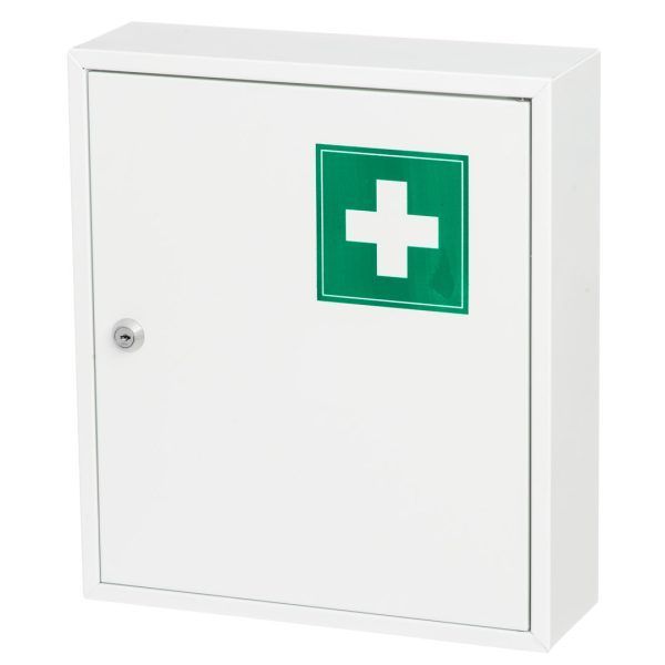 Et medisinskap sikrer at medisiner og førstehjelpsutstyr er lett tilgjengelig når det er nødvendig. Skapet har lås som gjør det bernesikkert. Medisinskap i stål. Hvitt pulverlakkert stål med hvitt kors på grønn bakgrunn på døren. Sylinderlås med to nøkler. Installasjonsskruer og plugger følger med. Mål: 31,7 x 10,7 x 36 cm