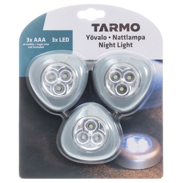 Nattlamper med kraftig hvitt lys. Brukstiden er opptil 100 timer. Batteri 3xAAA (ikke inkludert). Festes med borrelås.