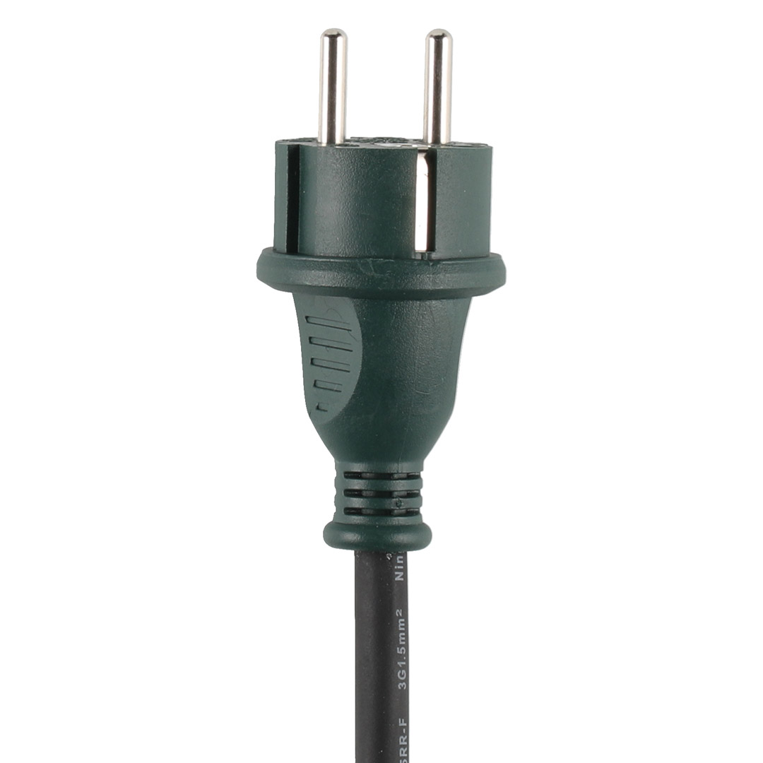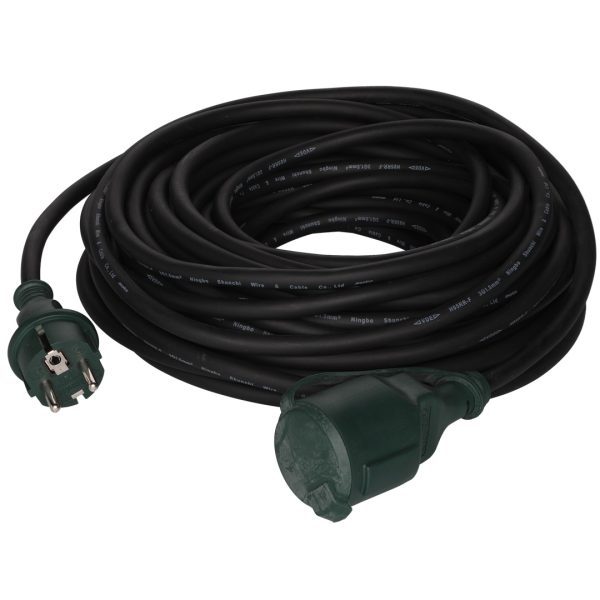 Gummi skjøteledning for utendørs bruk. Lengde 20 m. Kabeltype 3G1,5mm2 H05RR-F. Sprutsikker IP44. 16 A/250 V.