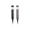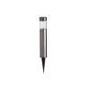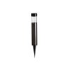 Elegant solcellelampe for utebruk som står stødig med jordspyd. Lyser i opptil 6–8 timer etter full lading og slår seg automatisk på i mørket. Finnes i sort og sølv utførelse.