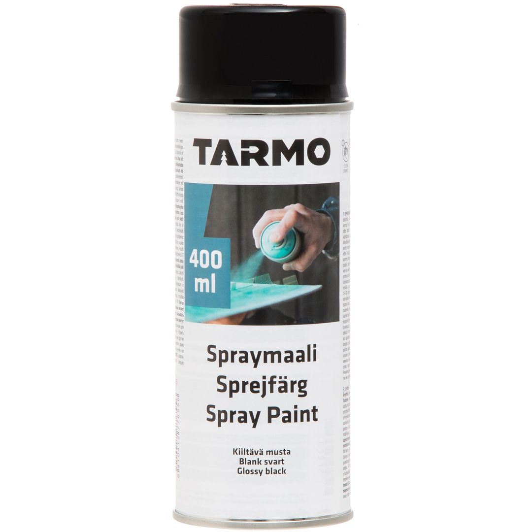 Tarmo SVART 400 ml spraymaling. Universal alkydbasert maling for tre, metall, hardplast, stein, betong, glass, vinyl og mange andre materialer.