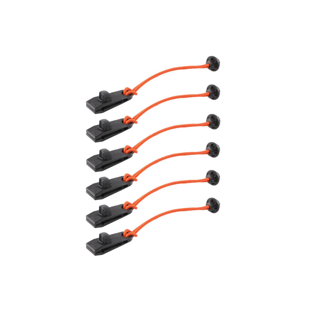 Elastiske strikk med klype for enkel og sikker festing av presenninger. Praktisk til bruk i hage, båt eller byggeplass.