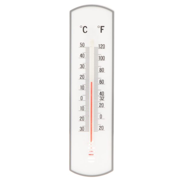 Plasttermometer for både innendørs og utendørs bruk. Høyde 20 cm. Måle område fra -40шC til +50шC.
