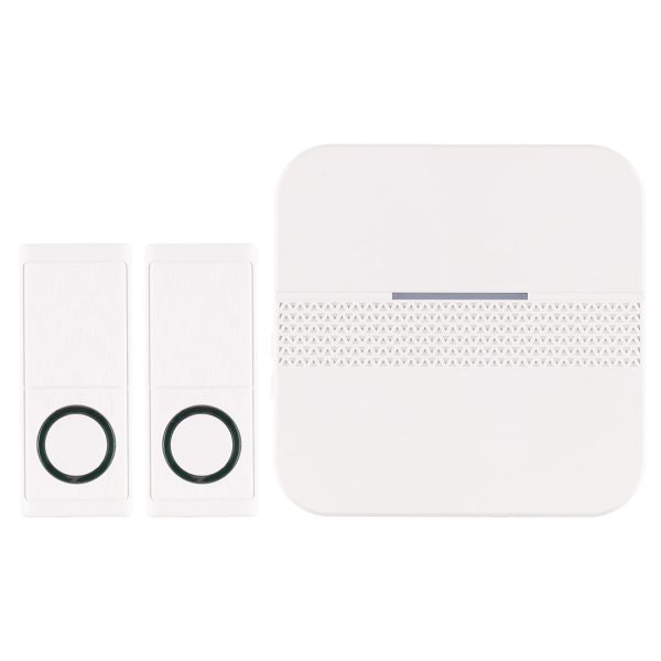 Trådløs ringeklokke med to senderknapper. Sendeknapper kan programmeres for å aktivere ulike melodier slik at det er lett å gjenkjenne hvilken knapp som brukes. 30 forskjellige melodier, mulighet for volumjustering. Enkel å sette opp. Signalrekkevidde ca. 100 m. 1 x CR2032 (inkludert). 3 x AA (ikke inkludert). Trykknapper IP44.