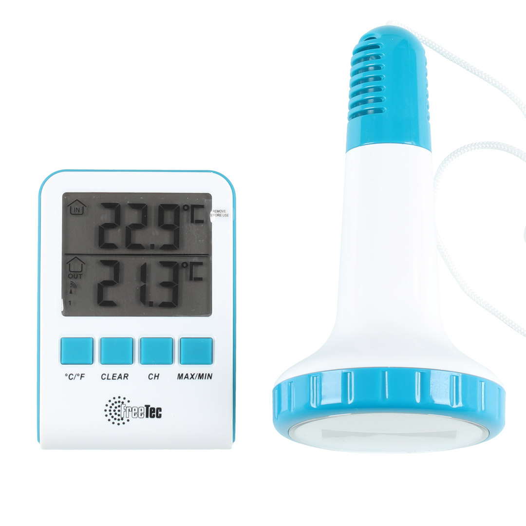 Hovedenhet har innendørstermometer (område fra 0шC til +50шC og display for basseng/vanntermometer. Vannsensor har digitalt display for vanntemperatur. Sendeavstand er 60 meter. Sendefrekvens er 433 MHz. Trenger 4 x AAA batterier ikke inkludert.