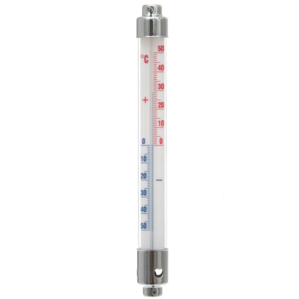 Tradisjonelt utetermometer. Fest med spiker/skruer på vinduskarmen. Måleområde fra -50 шC til +50 шC.