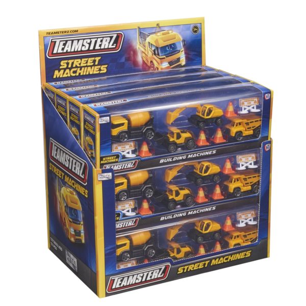 Utforsk byggeplassen med Teamsterz Arbeidsbiler med Utstyr. Settet inkluderer ulike arbeidskjøretøy som gravemaskin, bulldoser og lastebil, alle med bevegelige deler for realistisk lek. Perfekt for små byggmestere som elsker anleggsmaskiner. Passer for barn fra 3 år og oppover.