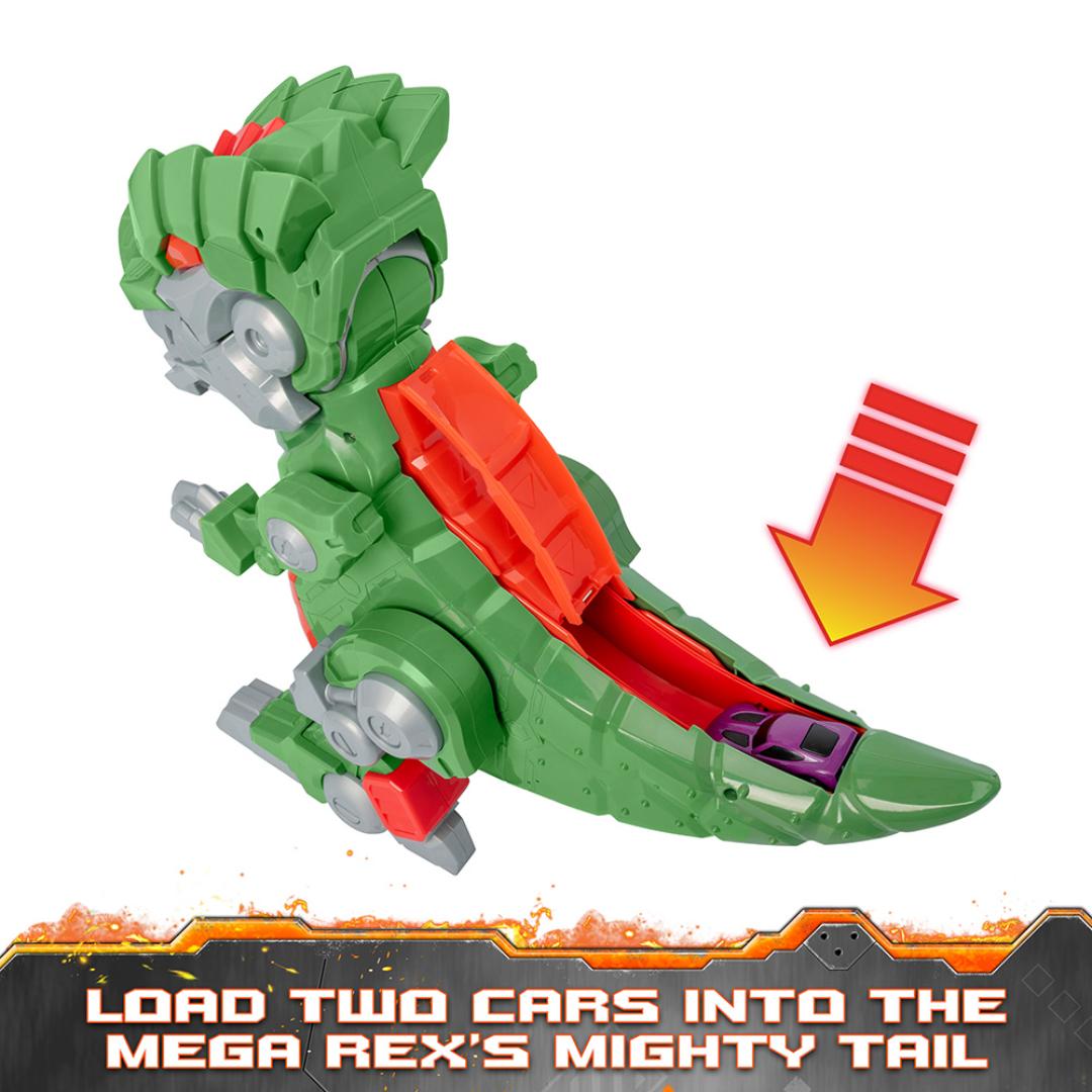 Teamsterz Robo Wreckerz – Mega Rex er en stor T-Rex på 47 cm med motorisert gange, lysende øyne og en effekt der biler skytes ut av munnen. Den kombinerer dinosaurlek og kjøretøy på en spennende måte, og den medfølgende bilen gir barn et klart startpunkt for actionfylt lek. Batteriene følger med, slik at Mega Rex kan tas i bruk med en gang.