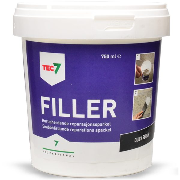 FILLER hefter til tre, gips, strie, malte flater, betong og andre porøse overflater. Godt egnet til glatting, fylling og reparasjon av vegg, tak, stukkatur, treverk, dekor eller lignende. FILLER er ikke egnet for bruk på metall- eller plastoverflater.