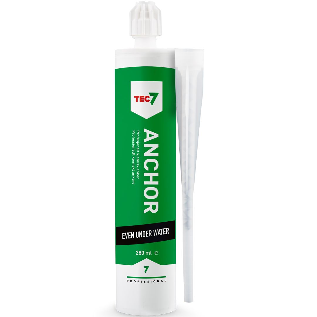 ANCHOR er et profesjonelt kjemisk anker for rask, enkel, robust og langvarig montering, forankring, festing og reparasjon i mur, stein og fjell, samt at den kan brukes som fyllmasse. ANCHOR er et to-komponent kjemisk anker, basert på vinylesterharpiks, hvor to kamre inne i patronen holder komponentene godt adskilt, noe som hindrer søl eller uønsket herding og øker holdbarheten til massene i patronen. Komponentene blandes korrekt i blanderøret på vei ut av patronen. ANCHOR er ETA-sertifisert for bruksområder, brannsertifisert og dokumentert vanntett. Den kan brukes på fuktige overflater, også under vann, og innendørs da den er ftalat- og styrenfri. ANCHOR herder raskt uten å krympe eller ekspandere, blir sterkere enn underlaget og og tåler høye belastninger. Etter herding er ANCHOR motstandsdyktig mot UV-stråler, kjemikalier, klor- og saltvann, samt brann og tåler temperatur fra -40 C til +80 C (opptil +120 C i kortere perioder). ANCHOR kan lagres i minimum 18 måneder, selv etter åpning hvis korken er skrudd godt på etter bruk.