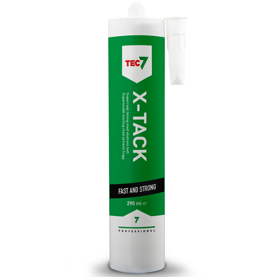 X-TACK er et raskt herdende MS polymer universallim for permanent montering som erstatter lodding, bolter, nagler, skruer, spiker, o. L. selv i temperaturer ned til -10 C. Med ekstrem umiddelbar heft (600 kg/mэ) og høy permanent limstyrke (230 tonn/mэ) gjør den stort sett ekstra festing unødvendig. Dette gjør den perfekt til vertikal liming og liming på ujevne flater. X-TACK siger ikke, selv opp til 40 mm høyde på limfugen, beholder elastisiteten og tåler belastninger, bevegelser og vibrasjoner. X-TACK er næringsmiddelgodkjent, inneholder ikke ftalater, isocyanater eller skadelige løsemidler og er spesielt utviklet for å møte alle krav til festing innen byggindustrien, både innen- og utendørs. Den kan brukes på våte overflater og herder sågar under vann. X-TACK er tilpasset nordiske værforhold og er temperaturstabil mellom -40 C og +90 C, UV-bestandig, vann- og lufttett, resistent mot sopp og bakterier, samt overmalbar. Under oppbevaring i patron tåler X-TACK å fryse/tine gjentatte ganger uten å miste sine egenskaper.