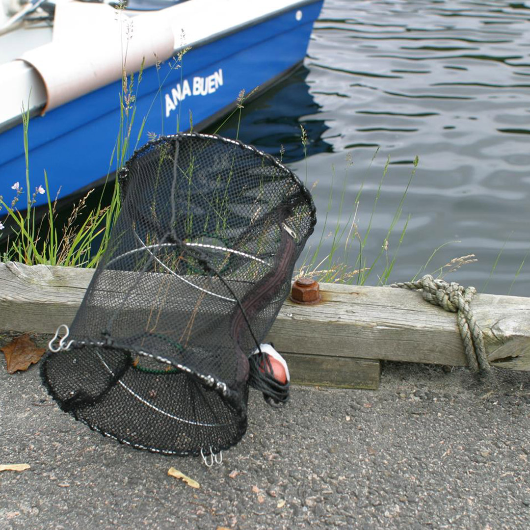 Teinen åpnes ved å løsne de to stålklemmene. Som agn brukes knust blåskjell, muslinger eller fiskeavfall. Teinen er utstyrt med opphaler og flottør. La den stå i ro på bunnen en tid før den etterses, gjerne over natten.