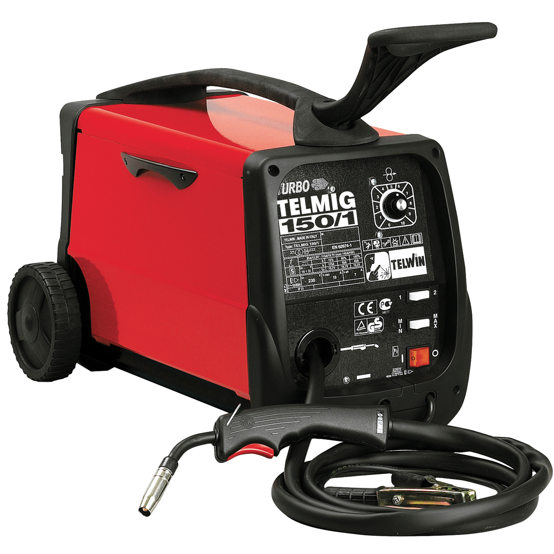 Hjulgående mig-apparat velegnet for tynnplatesveising og let tere vedlikeholdsLeveres med slangepakke, jordings klemme, sveisetråd og gassventil forliten flaske. Trinnløs regulering av trådmatingshastighet. Viftekjølt. Nettilkoblin g 230 V. Fase 1 Frekvens 50 Hz Merkeeffekt (60%) 1,5 kVATom gangsspenning 18-31 V. Reguleringsområde 30-145 A. Sveisestr ømv/intermittens (EN60974) 115/15 A. /% Buespenning/strøminn stillinger,antall 4 Tråddiameter, stål 0,6 – 0,8 ќ mm. Tråd diameter, rustfritt0,8 ќ mm. Tråddiameter, aluminium 0,8 ќ mm. Trådrullstørrelse, maksD200 Sikringer, trege 16 A. Besk yttelsesklasse 21 IP TemperaturklasseH Dimensjoner LxBxH 33 5x850x495mm. Vekt 24 kg
