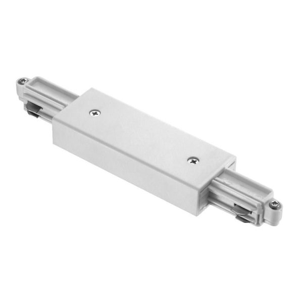Track-Light kontakt for stømtilkobling med dobbelt uttak. Dette er et skinnesystem som kan bygges ut etter behov. Du velger selv hvor mange skinner, spothoder eller annet tilbehør du ønsker å bruke opp til maks 3600W.