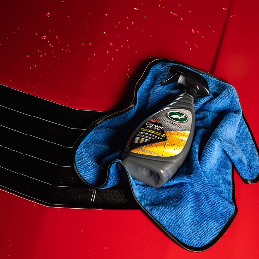 Turtle Wax Hybrid Solutions Ceramic Wet Waxsprayes på våt bil og tørkes av uten skjolder. Det akselererer tørketiden, motvirker vannflekker og sparer tid. Med sine syntetiske vokspolymerer øker dybden og glansen i lakken. De superhydrofobe SiO2-polymerene i en unik blanding gir øyeblikkelig perleeffekt og overflatebeskyttelse i flere måneder!