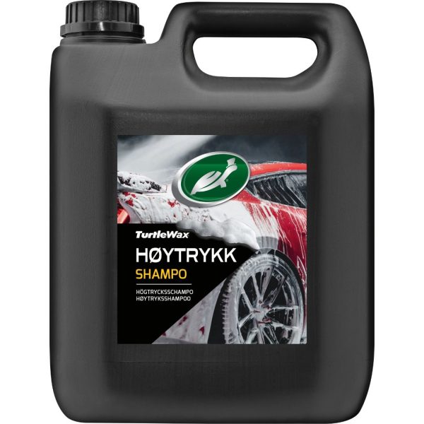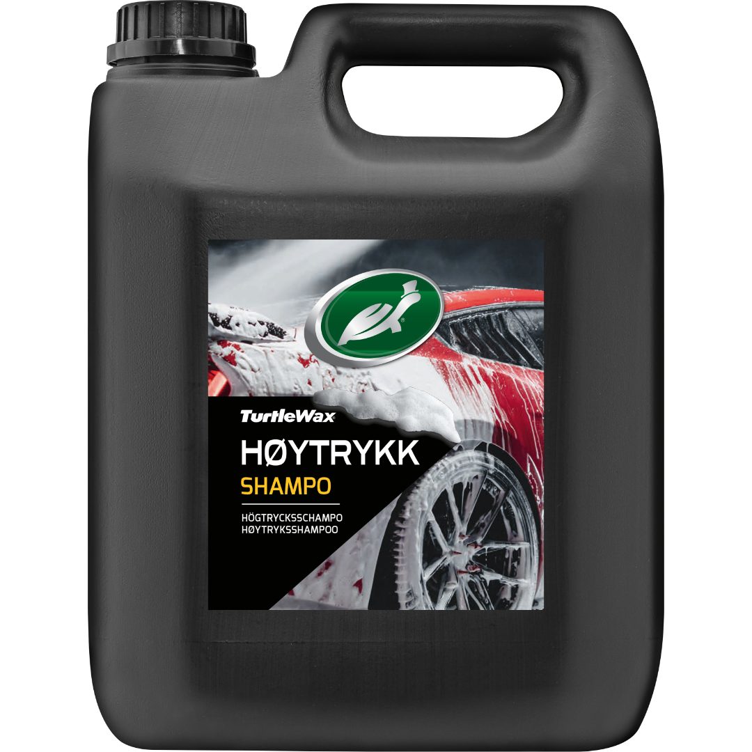 Turtle Wax Høytrykkshampo.En effektiv høytrykk shampoo for rengjøring av bil og båt. Gir mye skum. Kirsebærlukt. Ferdig bruksløsning for kjemibeholder eller kjemislange i høytrykkspyleren. Juster mengde shampo etter behov. Et proffprodukt i forbrukerpakning. Inneholder ikke fosfat.