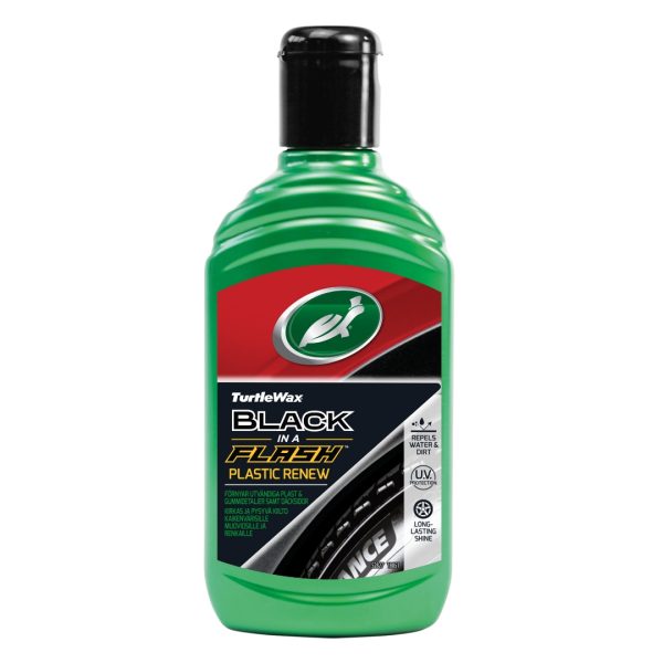 Turtle Wax Plastic Renew.Fornyer utvendige plast- og gummidetaljer samt dekksider. Inneholder en fargeløs, tyktflytende blanding av silikoner og voks som gjenoppretter slitt og falmet plast. Den tykke gelen varer i månedsvis og har en ekstrem holdbarhet.